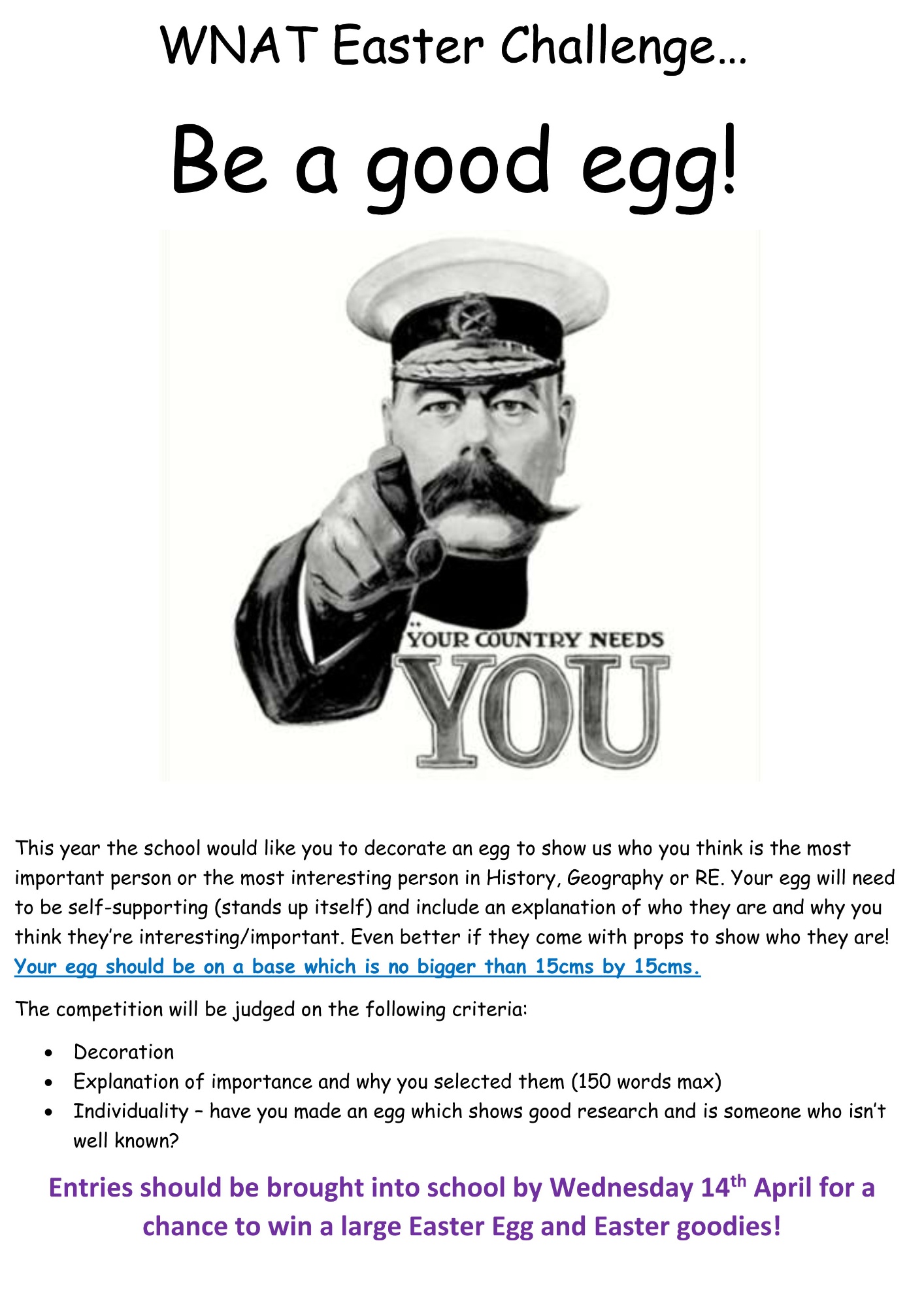 This year the school would like you to decorate an egg to show us who you think is the most